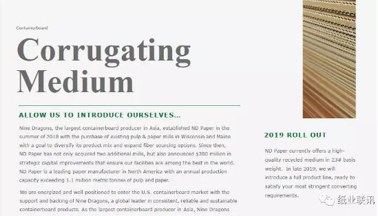 在瓦楞紙產(chǎn)品介紹文件中,NDPaper表示現(xiàn)在提供的產(chǎn)品克重為23-lb,2019年會推出完整的瓦楞紙產(chǎn)品系列。