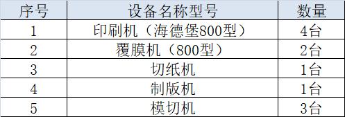 據公告顯示,浙江超泰印業有限公司廠房建筑面積753平方米,布置有印刷車間、覆膜車間、倉 庫、辦公室等,主要設備為印刷機、覆膜機、切紙機、制版機、模切機等。