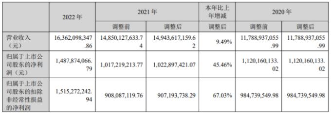 4月27日,裕同科技(002831)發(fā)布2022年年度報告,報告期內(nèi)公司實現(xiàn)營業(yè)收入16,362,098,347.86元,同比增長9.49%;歸屬于上市公司股東的凈利潤1,487,874,066.79元,同比增長45.46%。