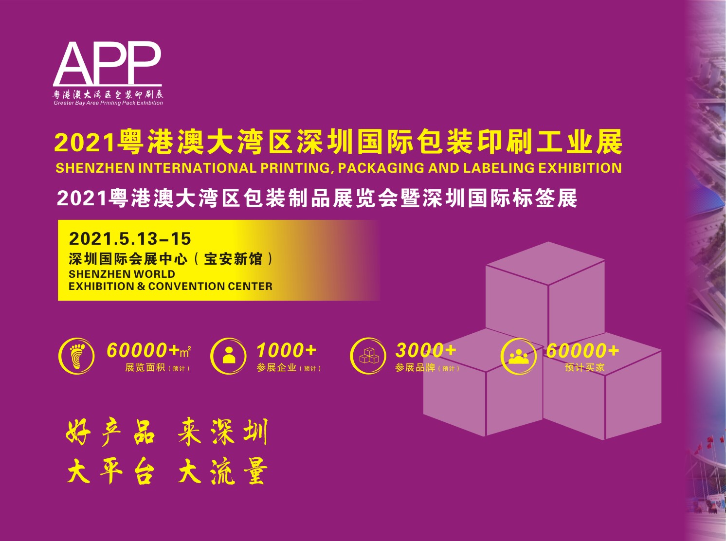 題記:“2021粵港澳大灣區(深圳)國際印刷包裝工業展覽會”將于2021年5月13-15日在深圳國際會展中心舉行,同期增設“2021粵港澳大灣區國際包裝制品展覽會暨深圳標簽展”在粵港澳大灣區和社會主義先行示范區在雙重利好的市場環境下,也迎來了以深圳為核心的粵港澳大灣區包裝印刷及標簽需求的大爆發,新的發展機遇應運而生。展會屆時將邀請深圳制藥業學會、深圳食品飲料協會、深圳包裝協會、廣東飲料制品協會、廣東包裝商協會、惠州包裝協會及廣州、東莞、惠州、汕頭、潮州、中山、佛山、珠海、江門、香港、澳門、福建、浙江、山東、湖南、湖北、河南等200多個涵蓋食品、包裝、標簽、食品飲料、酒、日化、醫藥、塑料制品、鞋服、玩具及相關協會組團參加,近60000專業買家蒞臨深圳參觀交流!
