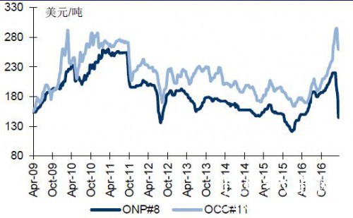 本周美廢ONP、OCC價格止跌回穩,ONP#8報145美元/噸,持平上周;OCC#11報240美元/噸,持平上周。本周美廢外盤市場行情止跌回穩。據聞近日國內大型紙廠在美國提高廢紙原料采購價格約10美元/噸,短期內美廢行情或已呈現底部,后市應以企穩震蕩,小幅回升為主。另外,本周中央審議改革推進固體廢物進口管理制度,進口廢紙或受影響。