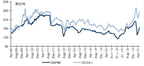 本周美廢ONP、OCC價格上漲,ONP #8報185美元/噸,較上周上漲5.71%;OCC #11報290美元/噸,較上周上漲3.57%