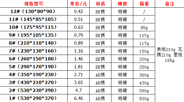 紙箱網為大家提供的報價數(shù)劇來源于阿里巴巴TOP10銷售商中位數(shù),基本可以反映當期紙箱成品的價格,方便大家參考。