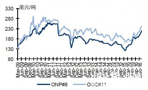 本周美廢ONP、OCC外盤市場(chǎng)行情續(xù)漲,ONP#8報(bào)220美元/噸,較上周上漲2.33%;OCC#11報(bào)270美元/噸,較上周上漲1.89%。整體而言,美廢價(jià)格持續(xù)漲勢(shì),特別是OCC,價(jià)格較多高于日廢和歐廢,下游紙廠接單壓力較大,觀望者居多,按需采購為主。