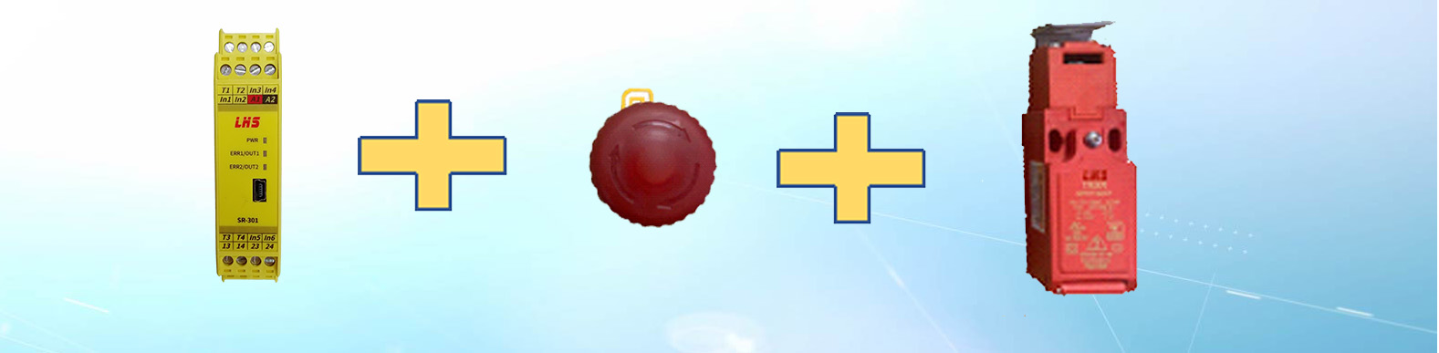 | 適合最簡單包裝設備(門常開) 2個磁感應+ 急停+ 安全控制器 不串聯最多3個產品。 |