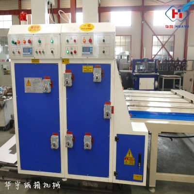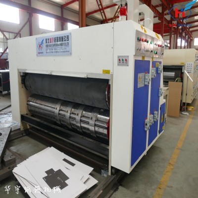 7.)模切部上裝有免版開槽刀具,可以調整生產不同尺寸開槽紙箱,免去做模具成本環節,做到一機多用。