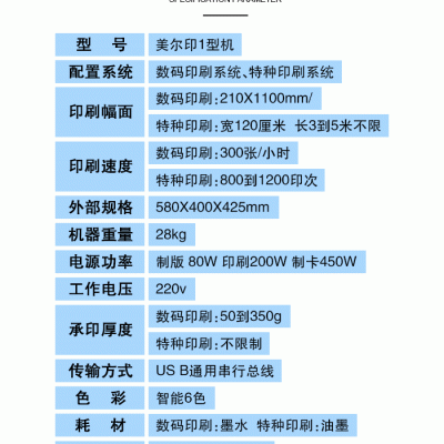 美爾印數(shù)碼印刷機(jī)MEY 1技術(shù)參數(shù)
