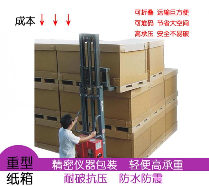 重型紙箱是指用一種特制的高強度、抗潮濕的瓦楞紙板制成的紙箱。因其價格顯著低于木箱、出口不需熏蒸、環(huán)保、可以回收造紙、不需垃圾處理費用、抗潮性好、裝箱及拆箱作業(yè)快速便捷、抗壓強度能達到木板水平等優(yōu)勢,所以被專門用以替代傳統(tǒng)木箱。