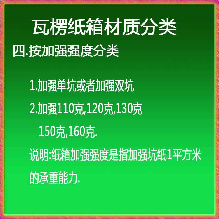 紙質材質分類:按硬度 加強雙坑/加強單坑 紙質材質分類:按顏色分類黃色/白色/涂布防水