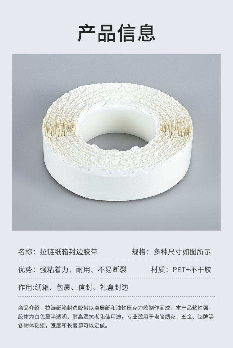 高粘海綿波浪留邊厚強粘性留邊易撕彩盒拉鏈紙箱快遞箱封口可訂制