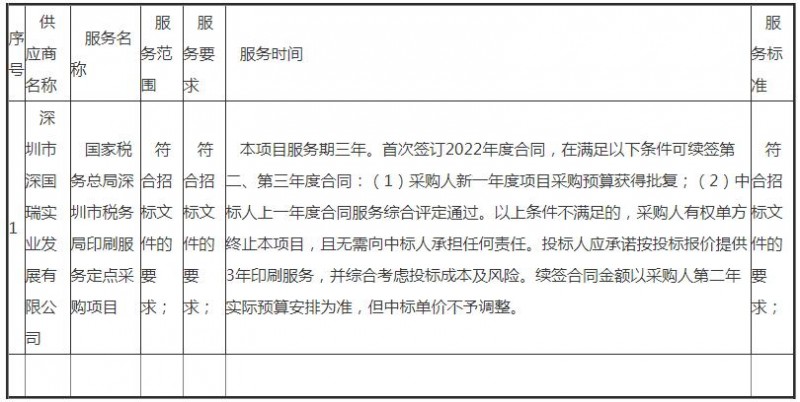 二、項目名稱:國家稅務總局深圳市稅務局印刷定點服務采購項目