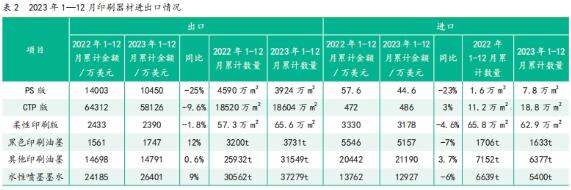2023年1—12月印刷器材進出口數(shù)據(jù)如表2所示。