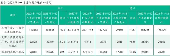2023年1—12月印刷品進出口數(shù)據(jù)如表3所示。