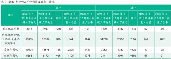 2023年1—12月印刷設備進出口數(shù)據(jù)如表1所示。